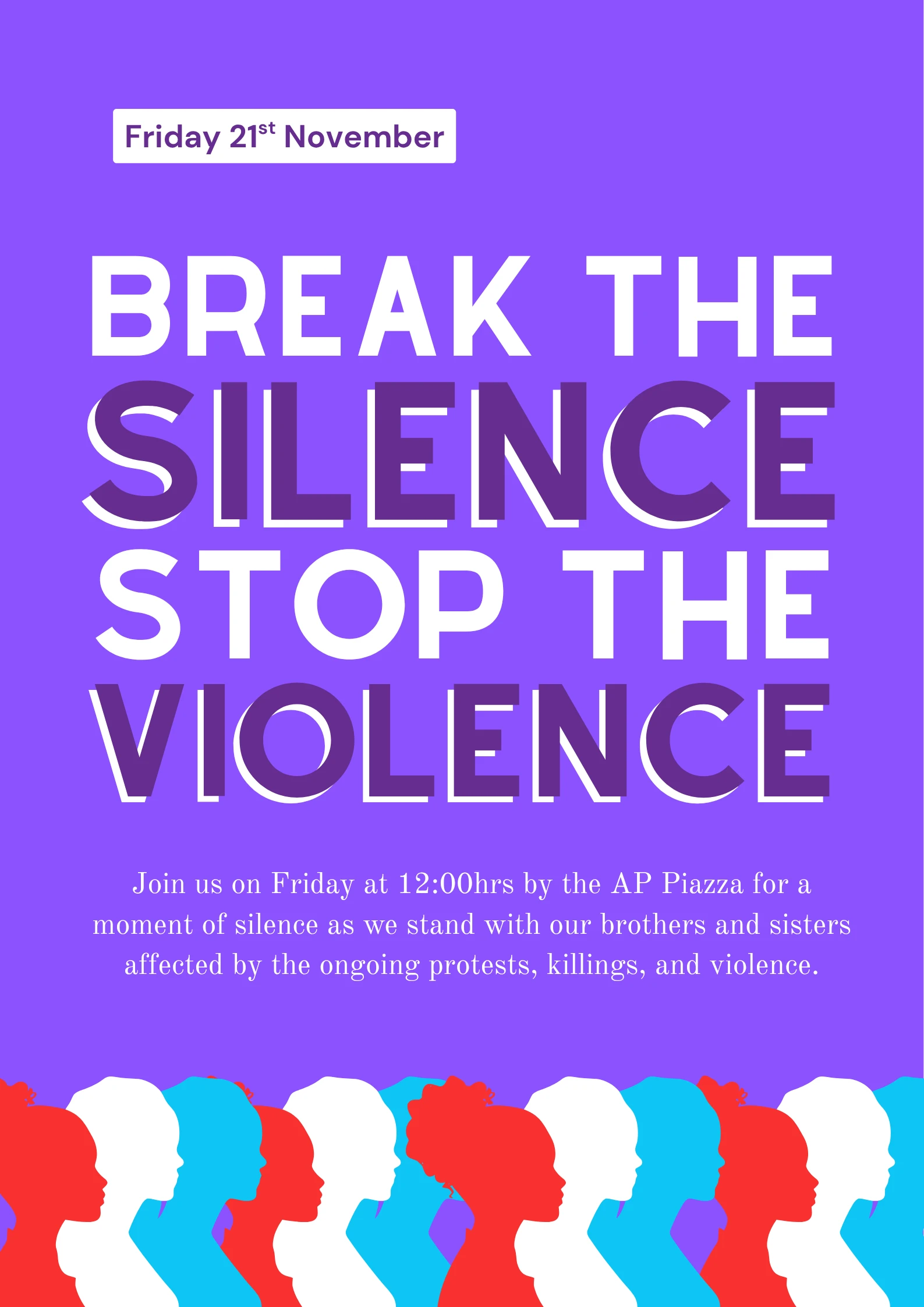 Join the Eastern and Southern African Society this Friday at 12:00hrs by the AP Piazza for a moment of silence in solidarity with those affected by the recent protests, killings, and violence across several African nations.