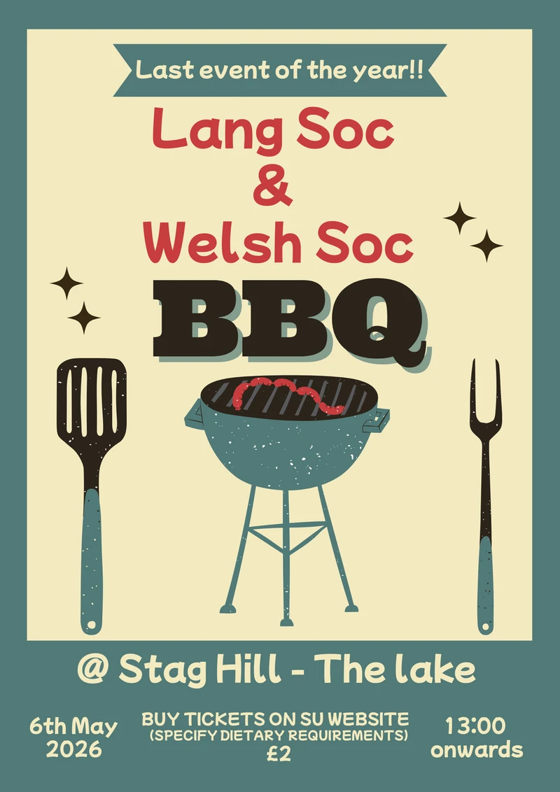 Join us for our final event of the year as we team up with Welsh Society for an end-of-term BBQ by the lake at Stag Hill!