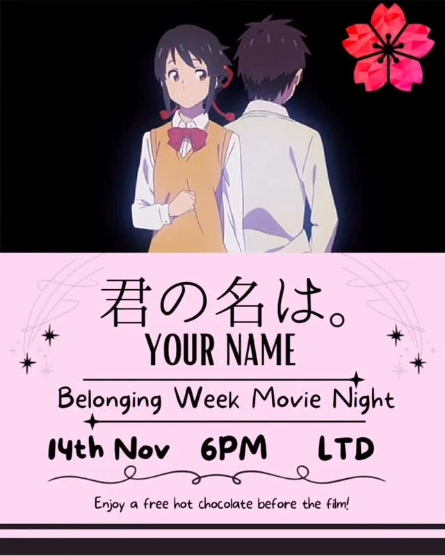 Join us for a nostalgic Japanese Movie Night in honour of Belonging Week! We will have Japanese snacks to share.