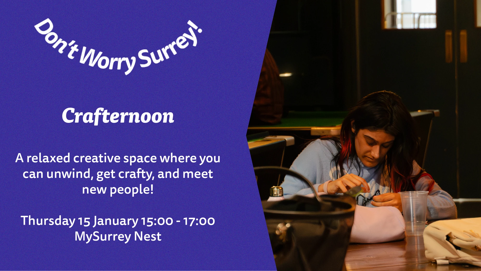 During the busy exam period, take a break to slow down and recharge at Crafternoon - a relaxed creative space where you can unwind, get crafty, and meet new people!