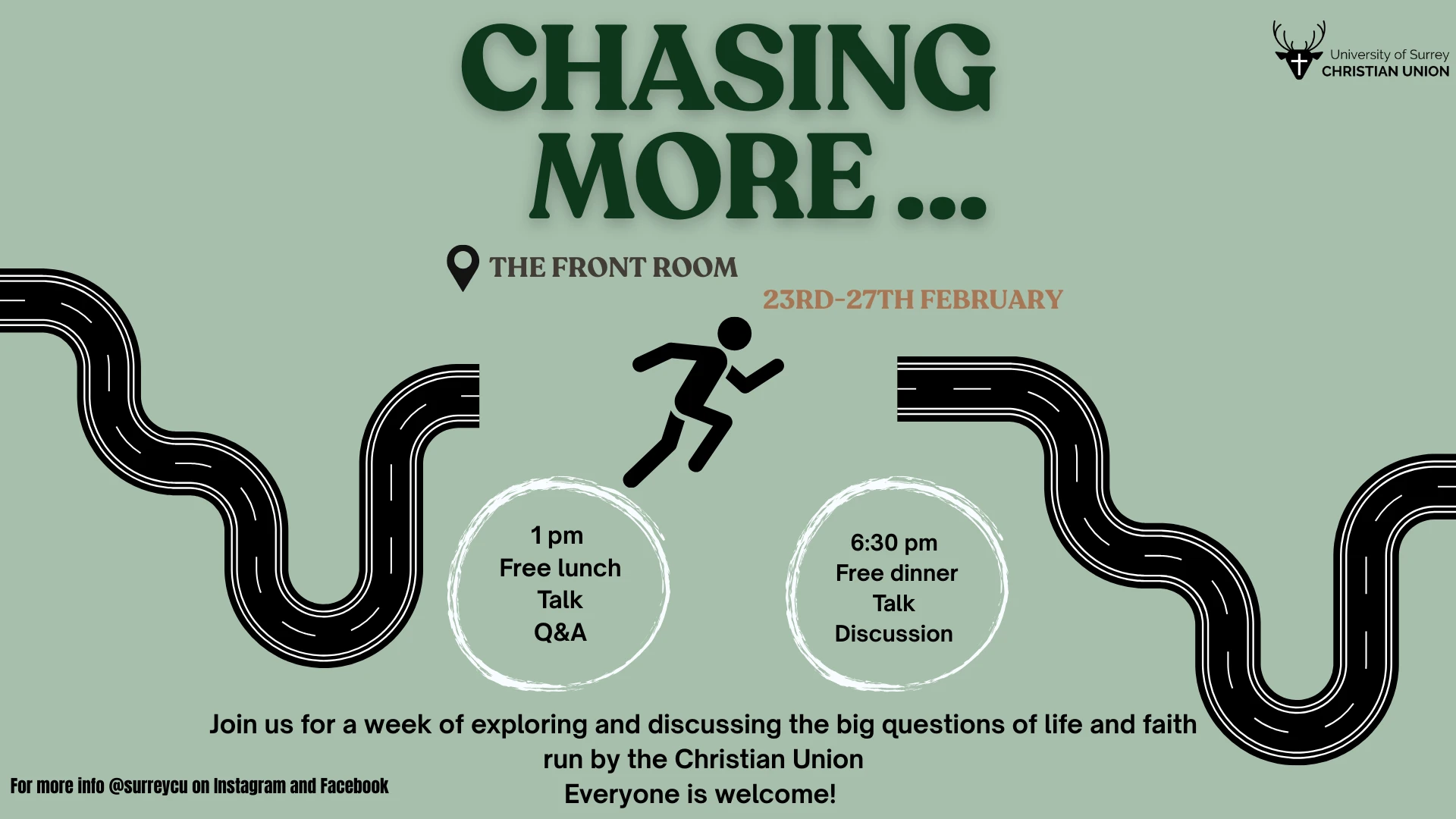 Held at the Front Room for where we offer you free lunches and dinners while you listen to more about Jesus and His teachings.