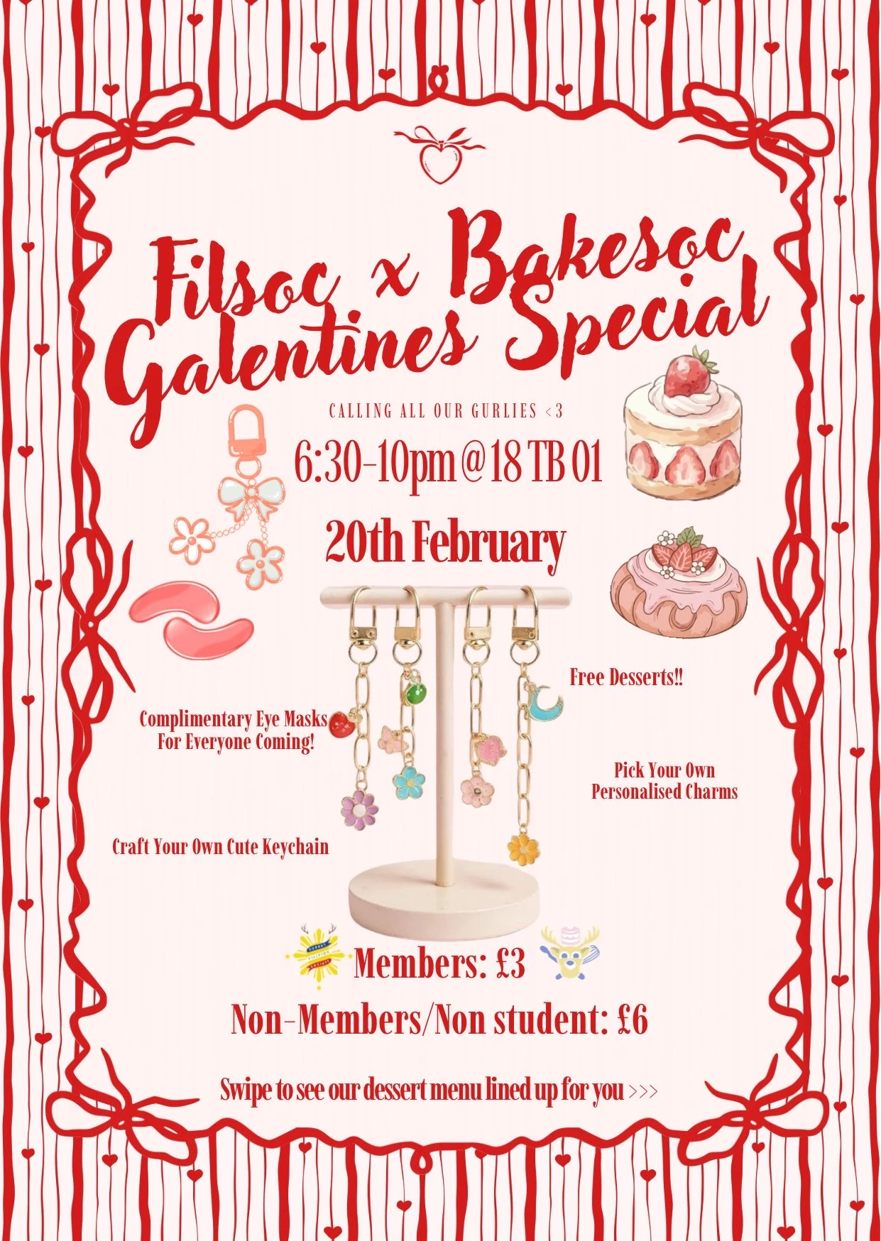 Join us for our Filsoc x Bakesoc Galentines Special for an evening of crafting, desserts, and celebrating girlhood <3