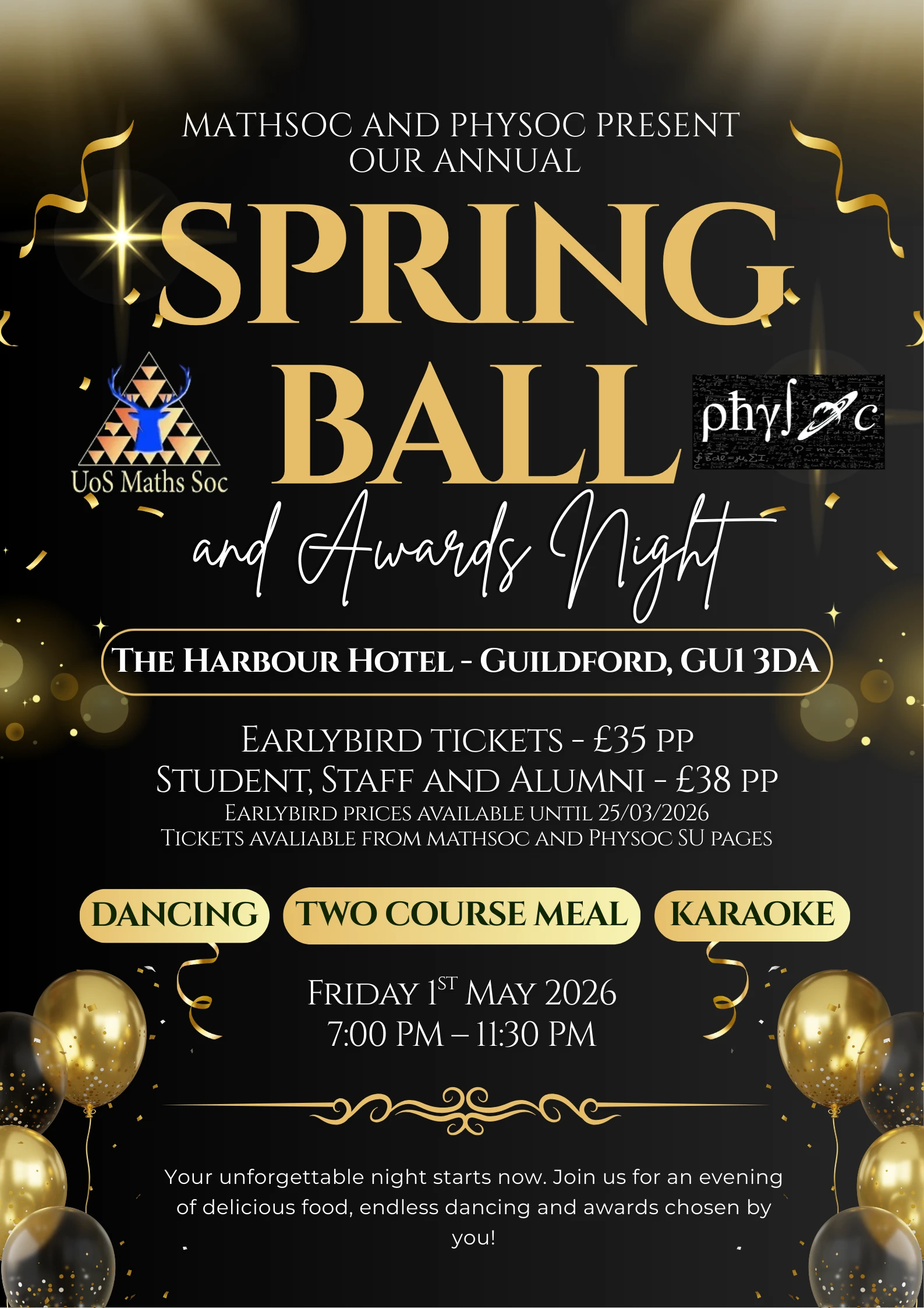 You’re invited to an unforgettable evening as students and staff from the Mathematics & Physics Department and Societies come together to celebrate the year at our Spring Ball.