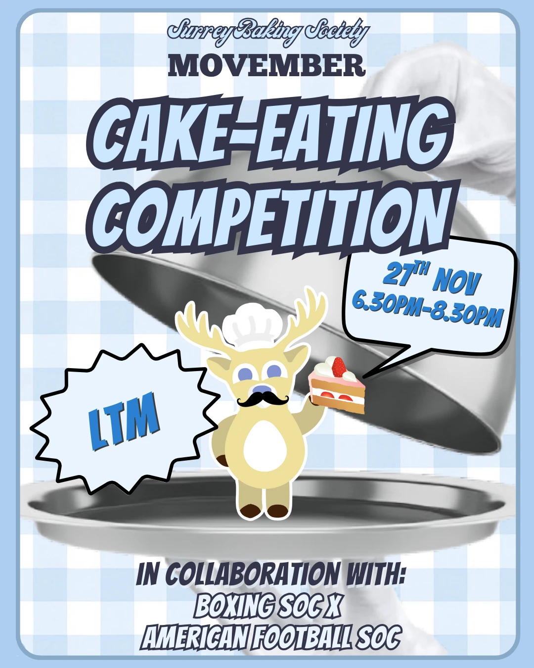 Join us for Champion of Cake, our end-of-semester showdown raising money for Movember 🥸